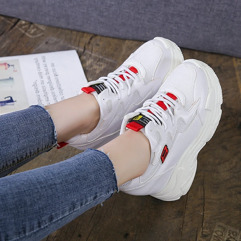 SWYIVY Quality Shoes Women Red Sneakers Platform Summer Shoes Casual Female 2019 Spring Autumn New Chunky Wedge Sneakers Woman