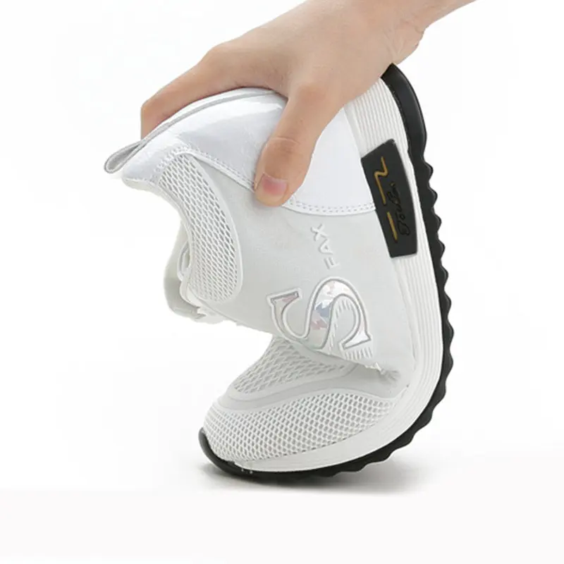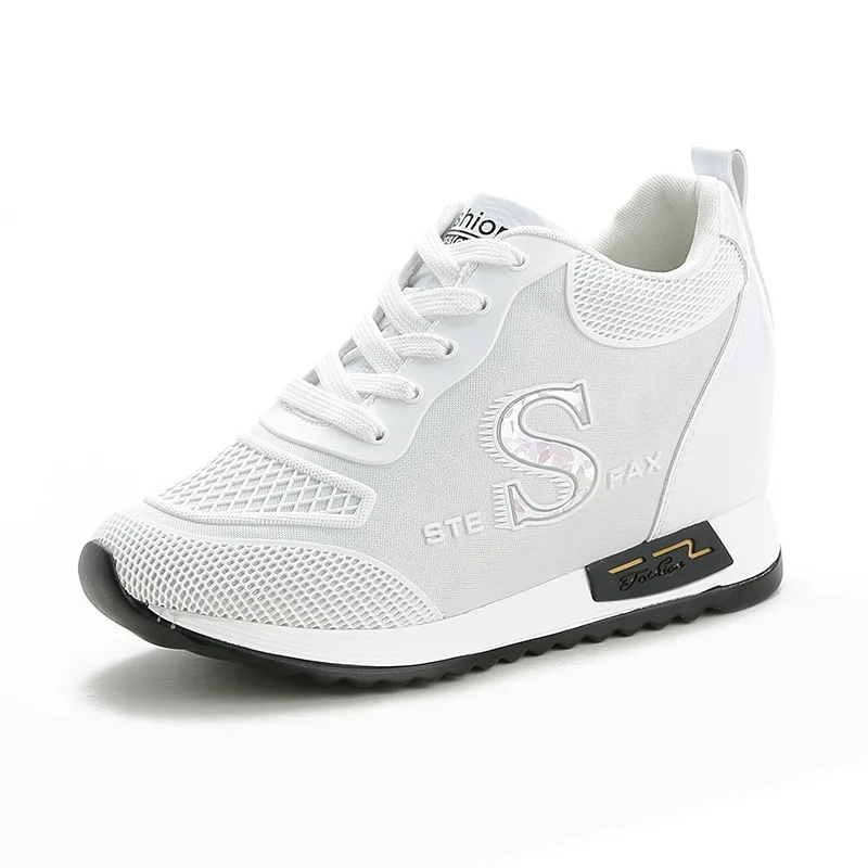 Special Offer for Hide Heels Fashion Sneakers Women Wedges Casual Shoes Lycra Lace up Height Increasing Women Shoes A