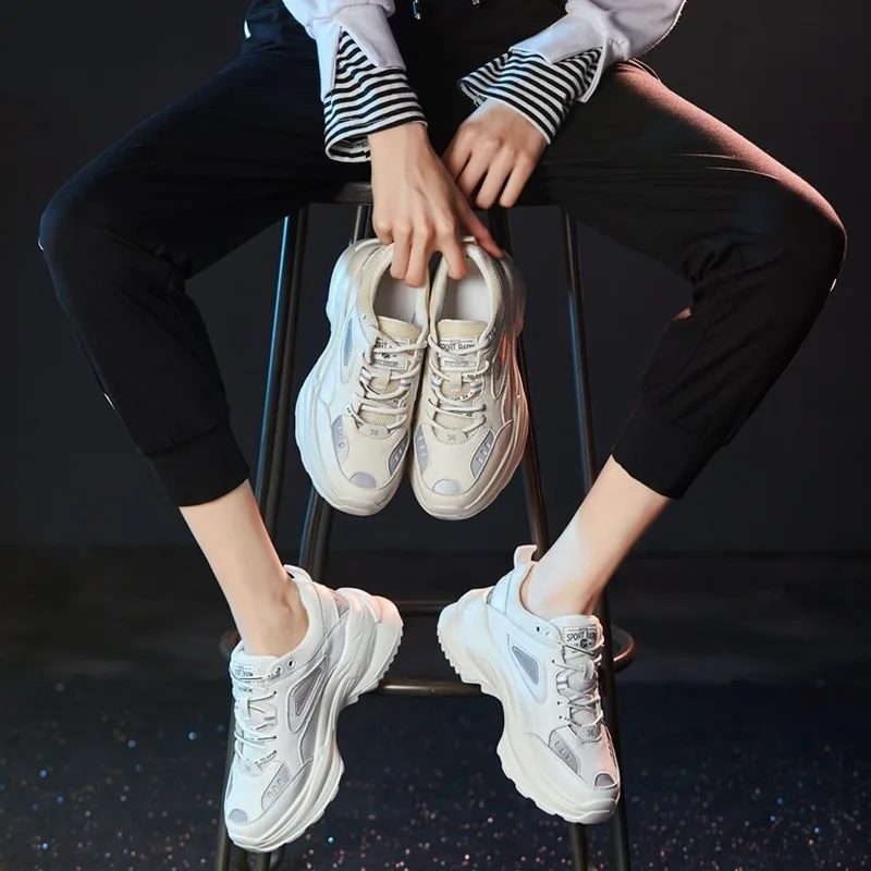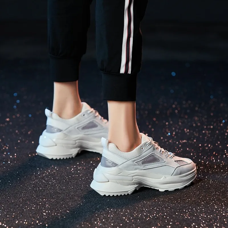 Sneakers Women 2019 Spring Fashion Breathable Casual Cozy Flat Shoes Platform Shoes Outdoor Ladies Chunky Sneakers R3-10