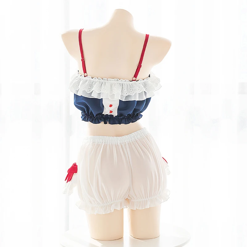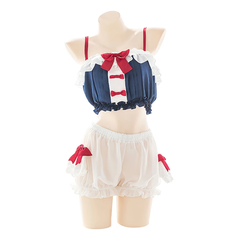 Related Product for Japanese Style Ruffle Lace Pajama Sets Women Lolita Cute Underwear Set Strap Tops and Shorts for Gi