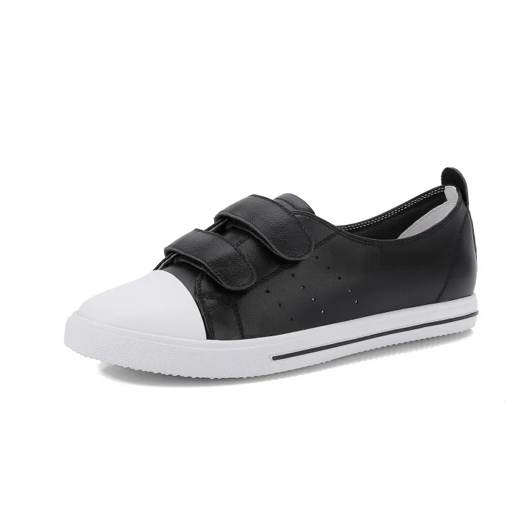 .image of MLJUESE 2018 women sneakers Genuine leather Hook&Loop white color cutouts spring Vulcanize Shoes wo