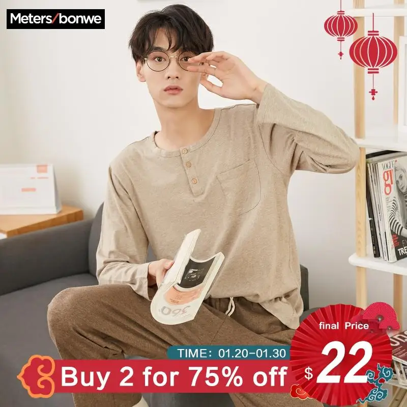 Deals Metersbonwe Cotton Pajama Sets for Men Sleepwear High Quality Male Underwear Loungewear Pyjama Homewear Home ClothesGet 65% OFF, VALID UNTIL TOMORROW