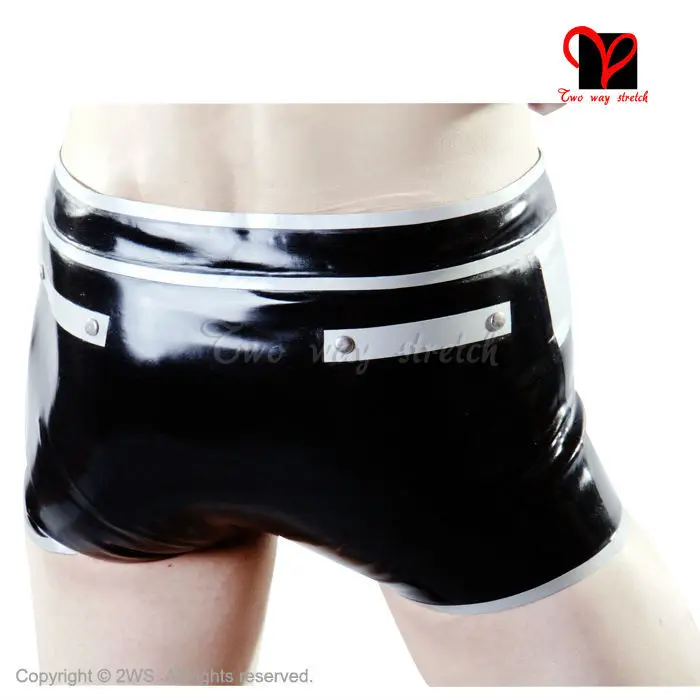 Best Chance for Sexy Latex boxer shorts zipper fly false pockets buttons Rubber panties thongs Hotpants hot pants B