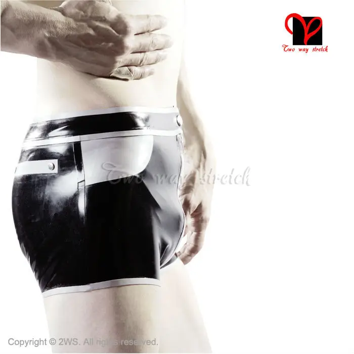 Related Product for Sexy Latex boxer shorts zipper fly false pockets buttons Rubber panties thongs Hotpants hot pants B