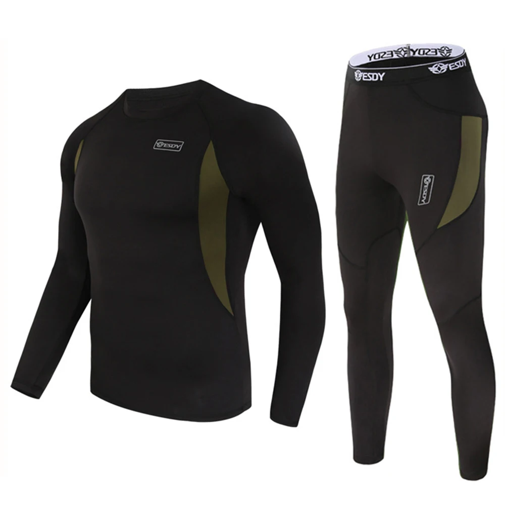 Special Price for Men Winter Thermal Underwear Sets Quick Dry Sport Suit Running T-shirt Set Black Breathable Tight L