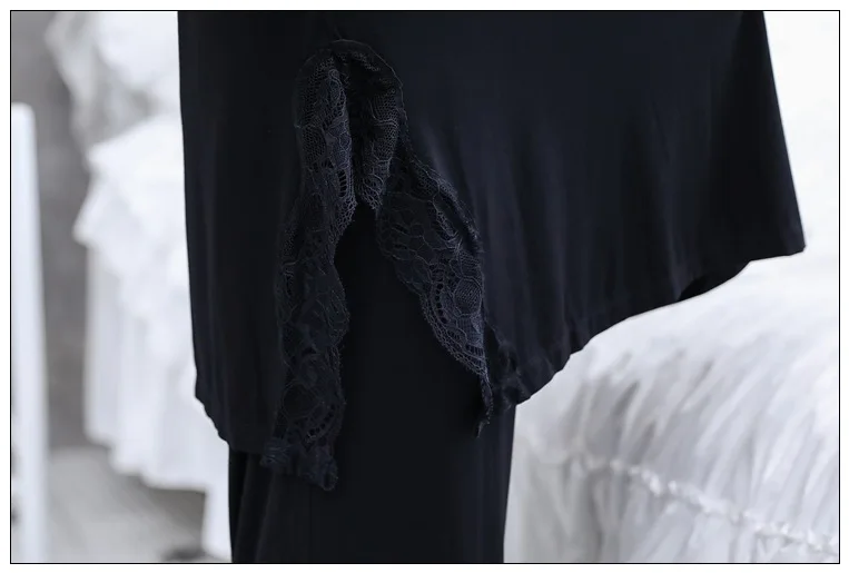 2019 new autumn winter women plus size suits loose long sleeve underwear pajamas lace sets clothes at home black 4XL 5XL 6XL