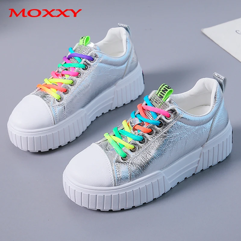 Special Chance for 2020 New Designer White Sneakers Women Shoes Rainbow Lace Up Colorful Platform Sneakers Silver Casu