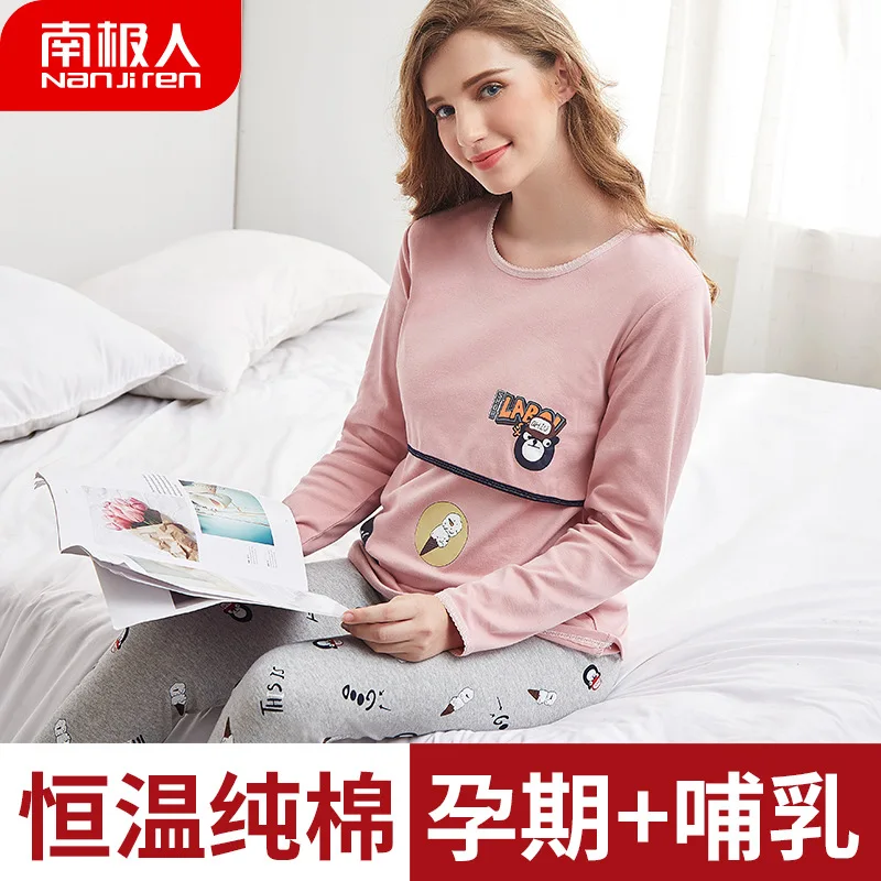 0 Response to "Good Offer for Pregnant Women Thermal Underwear Women's Postpartum Nursing Pajamas Pure Cotton Confinement Clothin"