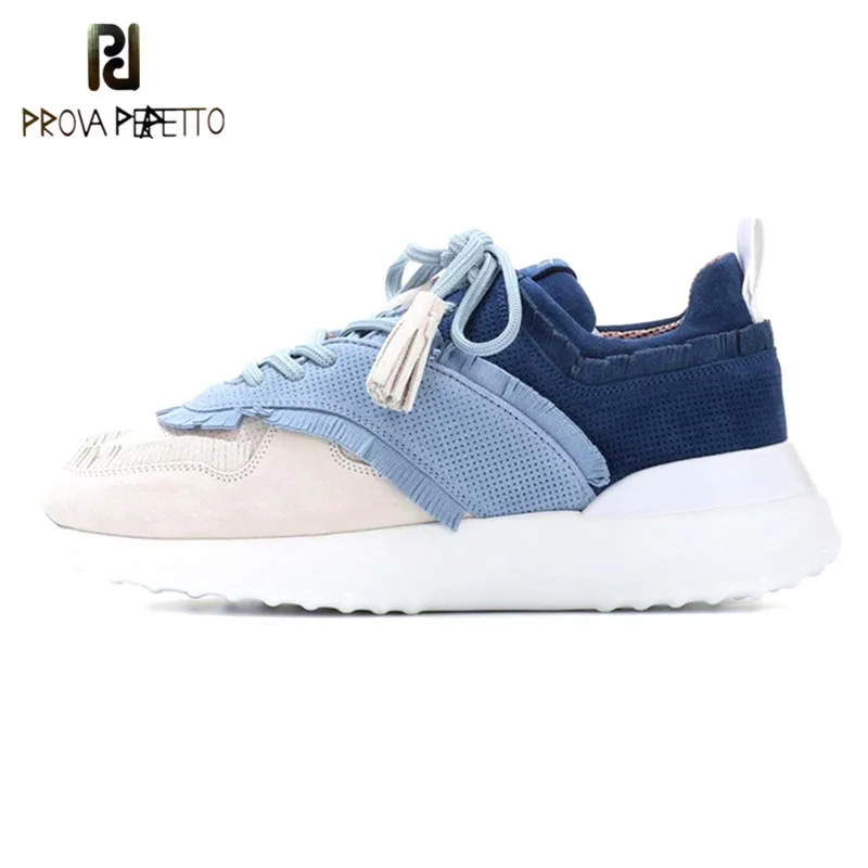 Best Price for Prova Perfetto Natrual Suede Leather Sneakers Woman Spring Tassel Shoes Casual Denim Female Leisure