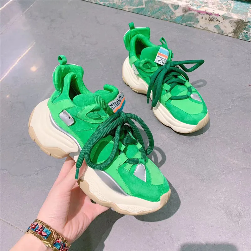 Special Offer for Tyburn Women Platform Chunky Sneakers Multicolor Lace-up Casual Vulcanize Shoes Luxury Designer Old