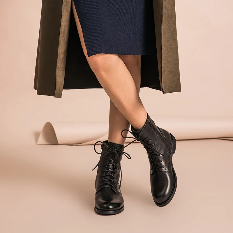 Special Price of BeauToday Ankle Boots Women Genuine Leather Lace-Up Side Zipper Top Quality Autumn Winter Lady Shoe
