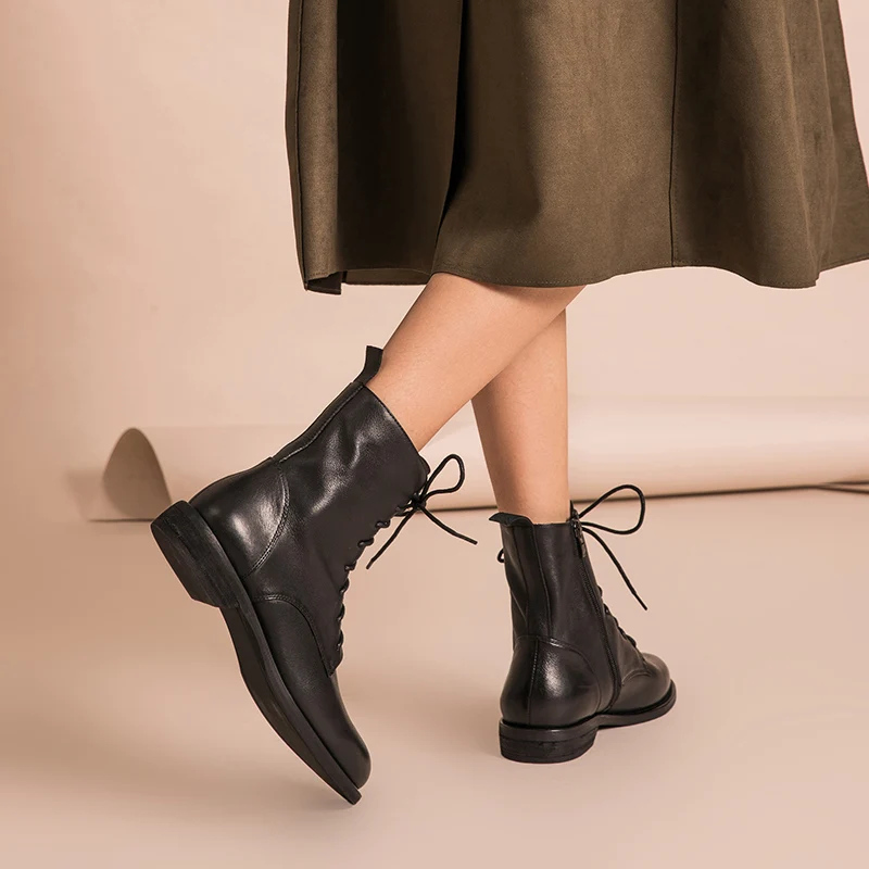 BeauToday Women Ankle Boots Genuine Cow Leather Lace-Up Round Toe Top Quality Autumn Winter Ladies shoes Handmade 03086