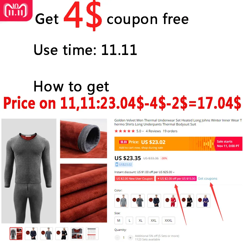 Coupon Winter Long Johns Thick MenThermal Underwear Sets Warm Shirt Long Sleeve Thermo Pants Thermal Suit Pajama Bodysuit UnderpantsEarn 17% Cash Back, VALID UNTIL TOMORROW