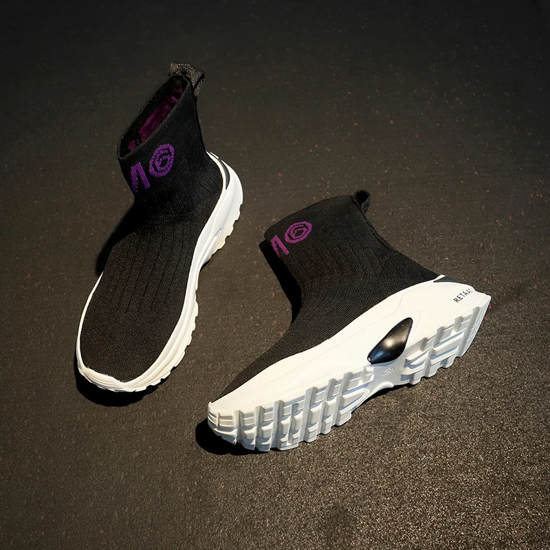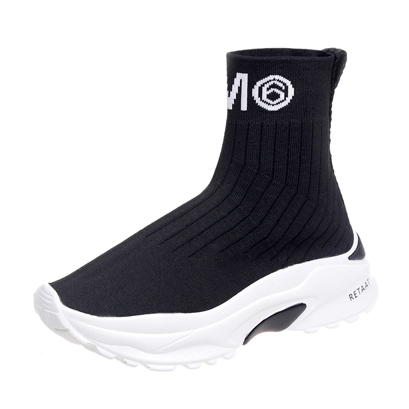 High Top Platform Chunky Sneakers Women Lace-up Stretch Fabric Casual Female Fashion Black White Sneakers Vulcanize Shoes 2019