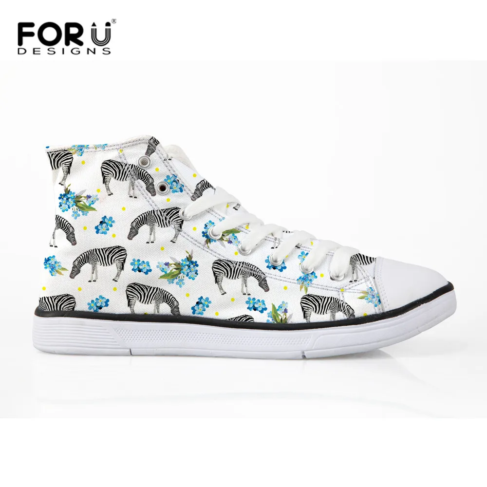 Related Product for FORUDESIGNS Flower Zebra Printed Women High Top Vulcanize Shoes 3D Animal Female Lace-up Canvas Sho