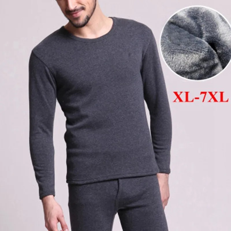 Related Product for Large Size 7XL Warm Men Underwear Long Johns Solid Navy Blue Gray Male 4XL 5XL 6XL Fleece Thicken U
