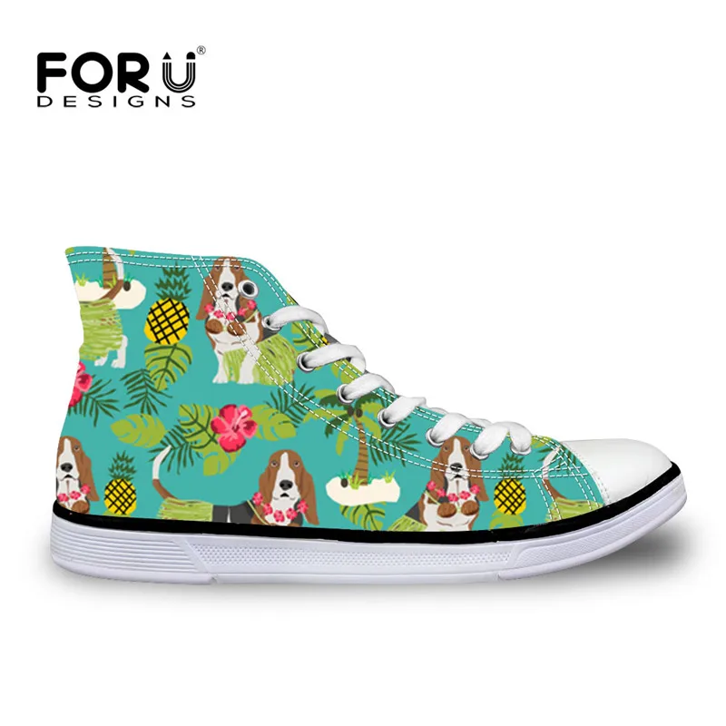 Related Product for FORUDESIGNS Women Vulcanize Shoes Lace-up Basset Hound Mint Cactus Pet Dog Print High Top Canvas Sh